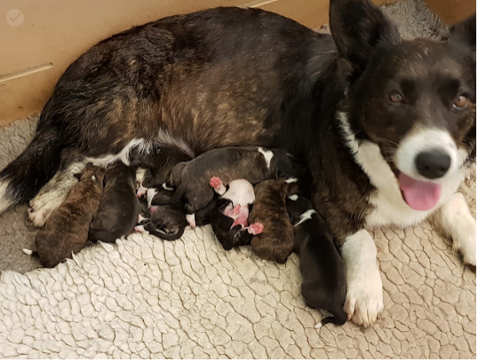 Klytie and Kusti have produced a litter of 8 brindle pups, 5 boys and 3 girls